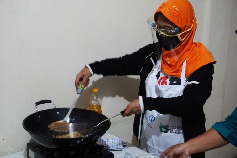 Mrs. Atiek was invited by one of her neighbours to take part in a cooking training held by YIIM and INSIGHT at Wisma Maros, at the RT 10 Cempaka Putih Post. After attending the training, Mrs. Atiek had the opportunity to get a business aid tool in the form of a steamer pot/cooker (28 cm in size).