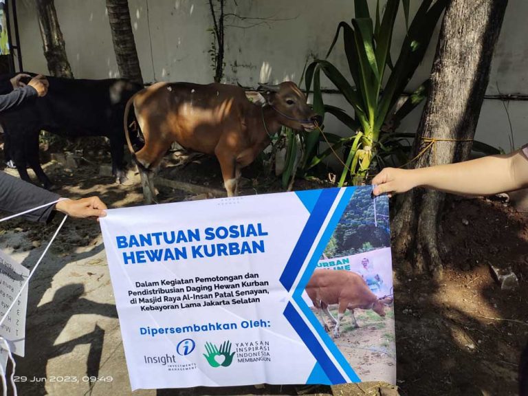 On July 10th 2023, coinciding with Eid al-Adha 1443 H Insight Investments Management Company (INSIGHT) together with the Foundation of Inspiration for Indonesia Development or known as Yayasan Inspirasi Indonesia Membangun (YIIM) through the Humane and Religious Social Program provided qurbani assistance at the Grand Mosque of Al Insan Patal Senayan. INSIGHT and YIIM distributed sacrificial animals worth IDR. 25,200,000.- (twenty-five million two hundred thousand rupiah) with the assistance of the implementing partners of the BKM grand mosque Al Insan Patal Senayan.