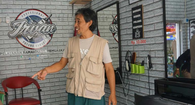 His barber is also frequently visited by several officials at the local level, such as members of the Probolinggo Regency local parliament (DPRD), high-ranking police officers and leaders of the National Counterterrorism Agency (BNPT), they want to to experience Mr. Irvan’s quality haircut first-hand. Previously, he even received assistance in the form of a washing chair from somebody whose important position in the government and also who cares about the development of his business.