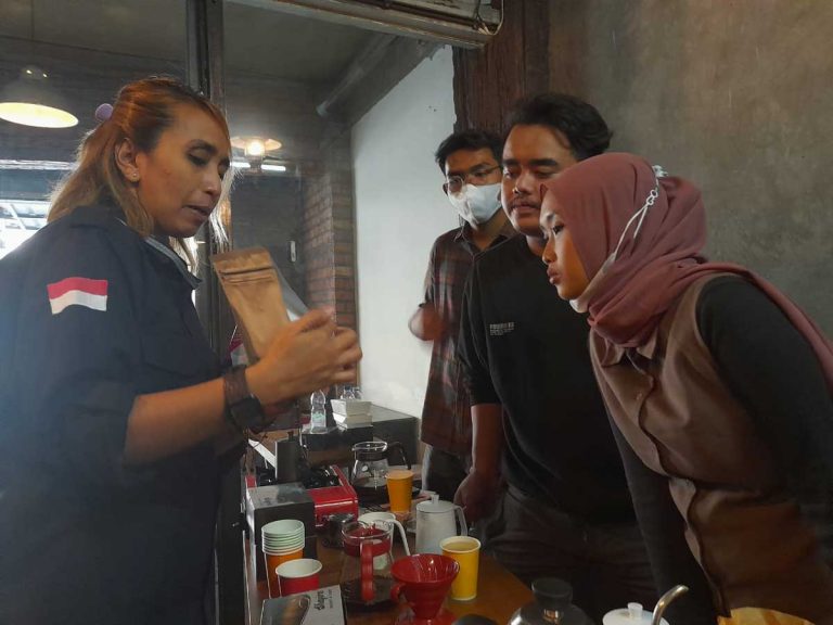 In addition, participants also learned about coffee shop management including calculating starting a coffee business, determining the cost of goods sold (HPP) of products, sales and promotion strategies, selecting the right raw materials, and standard operating procedures for coffee shops.
