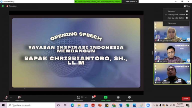 Seremoni penyerahan donasi dilakukan pada penutupan Acara Liga Medika melalui aplikasi ZOOM Meeting. Bantuan donasi diserahkan oleh Gabriella Regita Ketua Acara Liga Medika dan diterima oleh Dewi Astari Sekretaris YIIM.