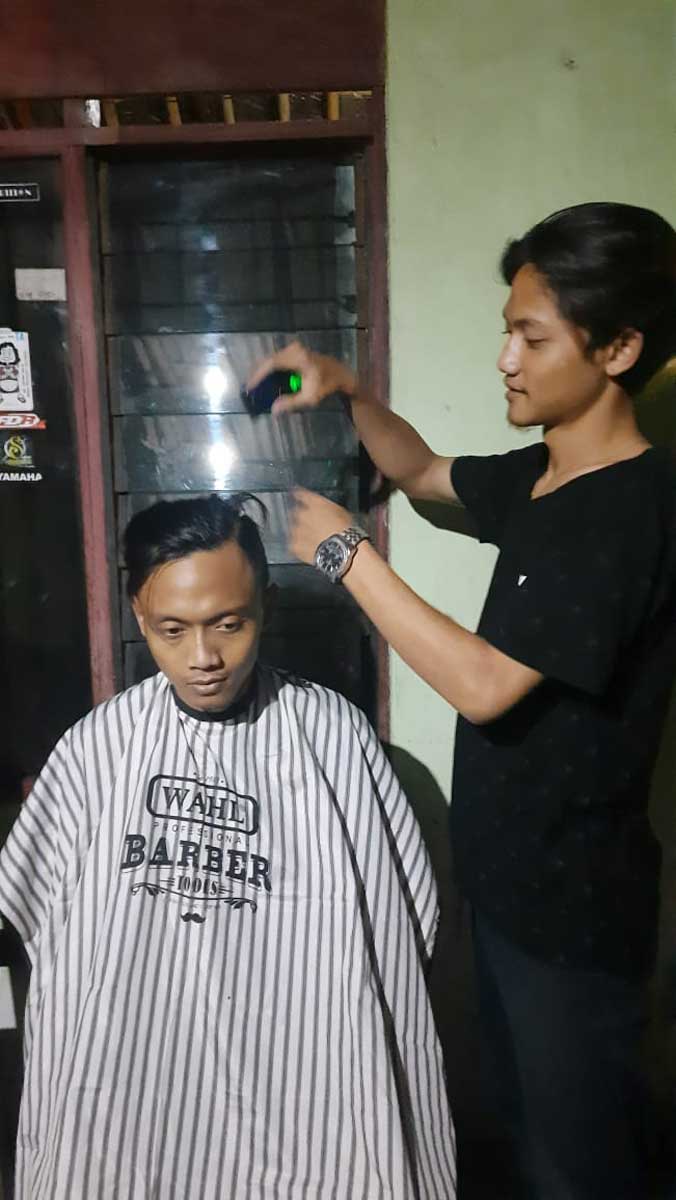 He collaborated with his network of friends to get customers. One of them is by accessing membership in a pencak silat organization, he is often asked to shave the member. In total, from the pencak silat organization alone, he has shaved off about 50 people. Not to mention the rest of the residents who often ask for his services to shave their hair. Within a week he earns additional income from haircuts ranging from IDR. 150,000 to IDR. 200,000 so that an average of IDR. 600,000. Apart from his salary from working in an electrical shop, he gets IDR 1,800,000 in a month. However, he admits that the income has not been able to meet the basic needs of himself and his family. He also often refuses customers because he is working.