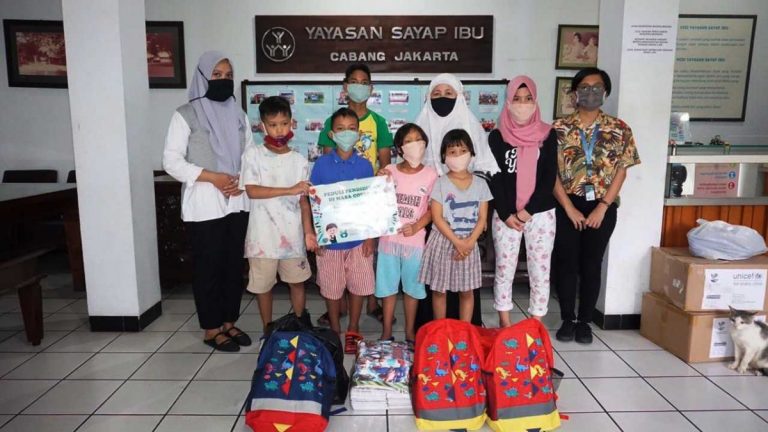 Selain kuota internet, YIIM juga memberikan bantuan alat tulis tahap pertama bagi siswa SD Kristen Nasional Anglo dan Yayasan Panti Asuhan Sayap Ibu.