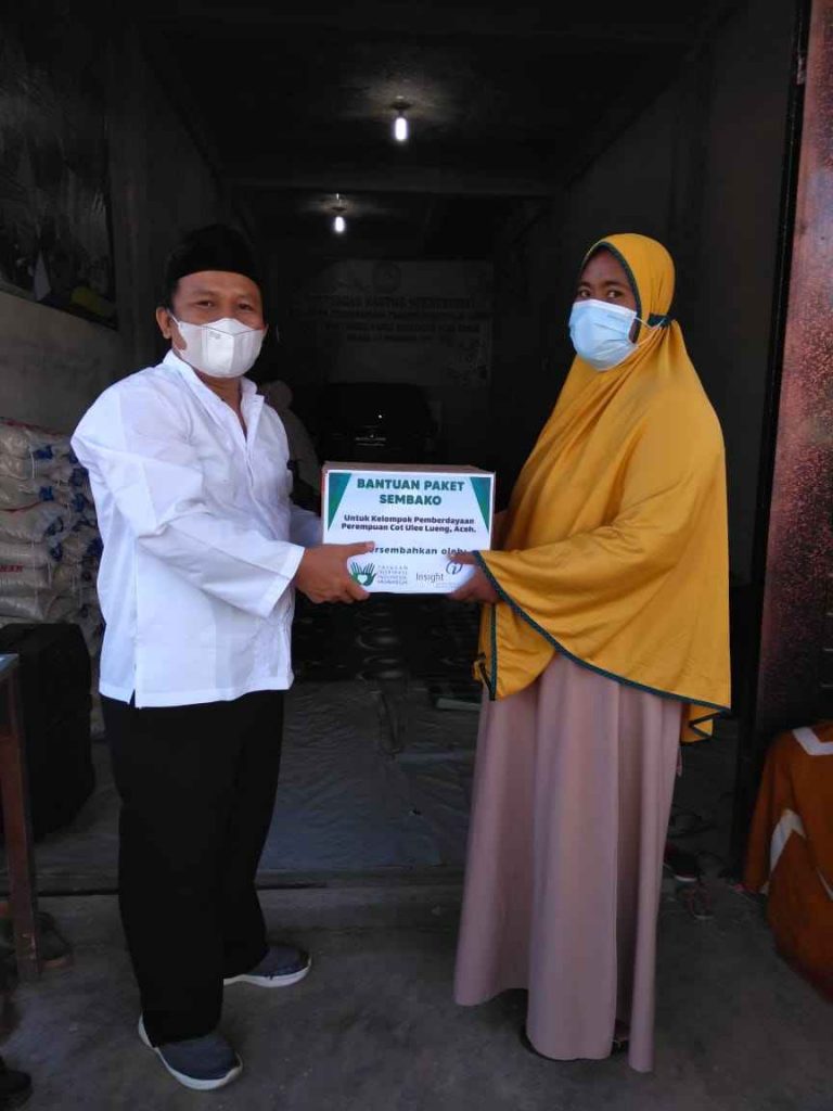 Adapun bantuan paket sembako ini diberikan untuk 70 orang perempuan anggota kelompok pemberdayaan perempuan Cot Ulee Lueng. Dengan bantuan yang diberikan berupa beras, mie instan, telur, minyak goreng, gula pasir, tepung terigu, biskuit dan masker seharga Rp. 250.000,-/paket.
